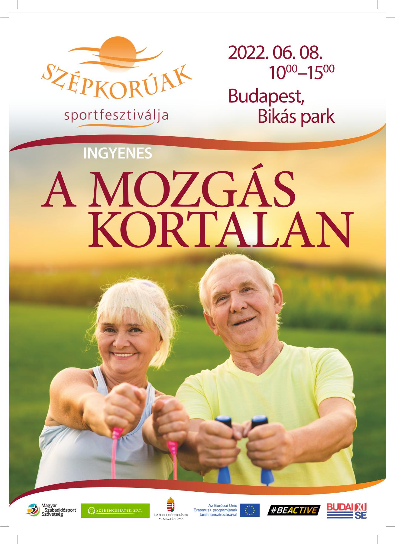 A Magyar Szabadidősport Szövetség 2022. június 8-án – 13. alkalommal - rendezi meg a régebb óta fiataloknak, azaz a nyugdíjasoknak az INGYENES sportrendezvényét a Szépkorúak Sportfesztiválját.