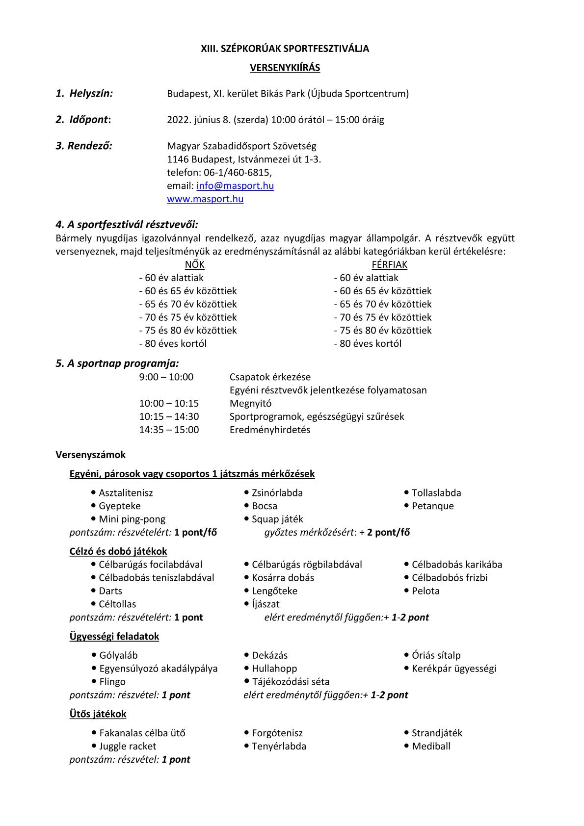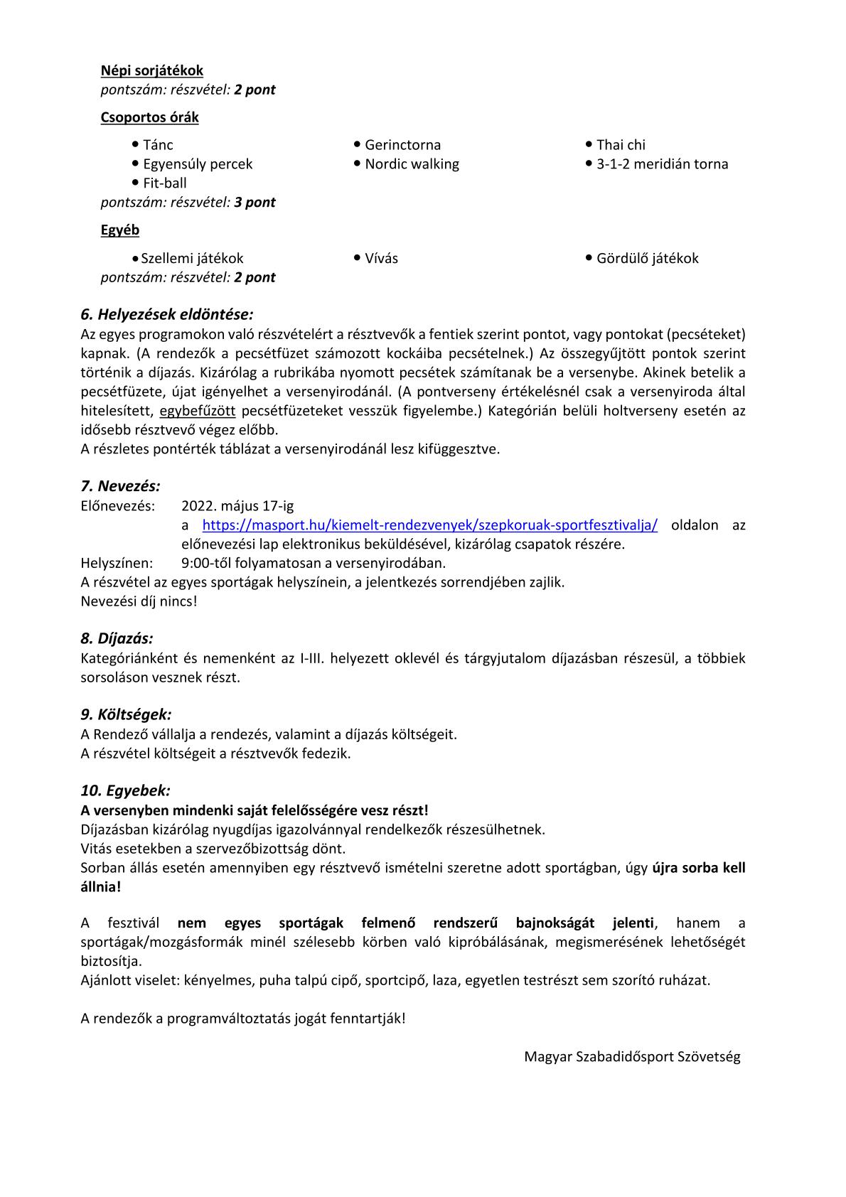 Mellékeljük a Szépkorúak Sportfesztiválja felhívó dokumentumait: