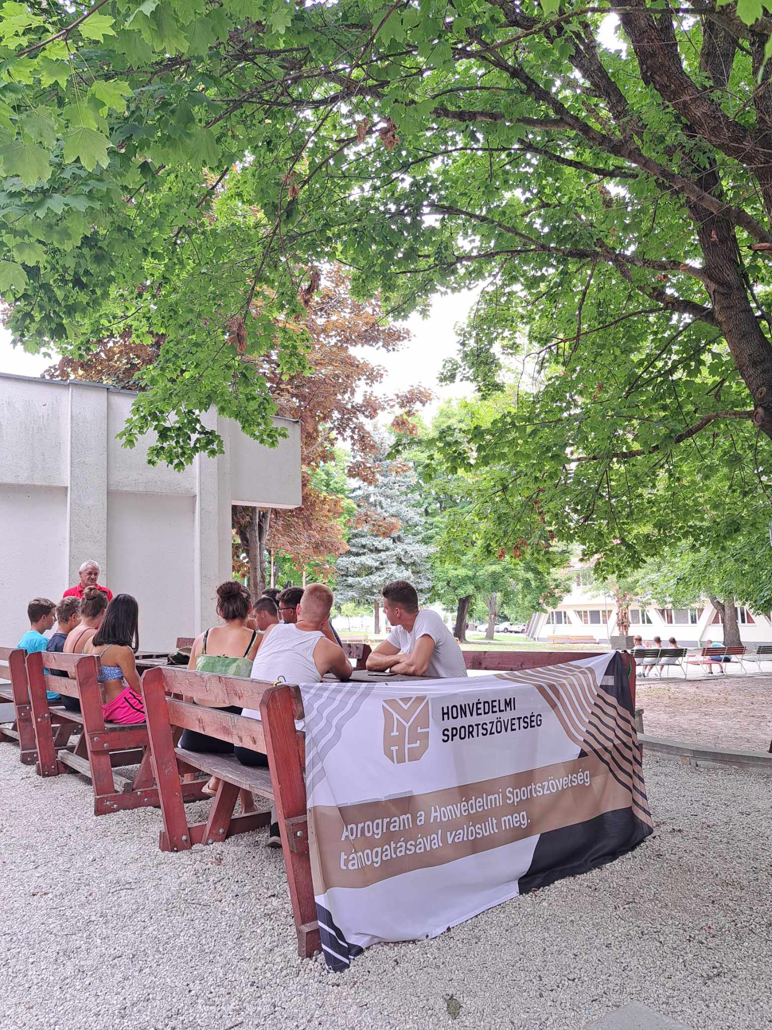 2023.augusztus 13-án utaztunk Balatongyörökre ebéd után. 15 órára elfoglaltuk a szállást, tartottunk egy megbeszélést a tábor napirendjéről, a feladatokról és kiosztottuk az egyen sapkákat. Katonai testnevelésről tartottam előadást, amit élénk érdeklődés kÍsért. Pontosítottunk a másnapi sűrű programról is. Ezután birtokba vettük a Balatont, ahol úszás mellett, kipróbálták a diákok a SUP-pal való közlekedést a vízen. Vacsora után strandröplabda következett.